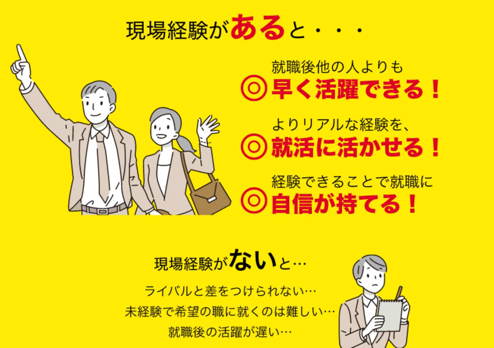 など、早いうちから自分のキャリア形成を意識して、実践を通してお金をもらいながら成長する機会を作りたい人にピッタリの取組みです。