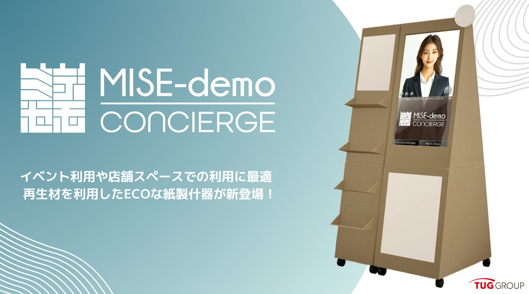 店舗の企画・デザイン・設計施工、および次世代の商環境づくりを手掛ける「MiraiLab」を展開する株式会社タッグ(所在地:東京都千代田区、代表取締役:湯本健司)は、短期のイベント使用に適した環境配慮型の強化ダンボール製筐体「ECO-demo(仮称)」をプレリリースいたします。本製品は、運搬や設置の負担を大幅に軽減し、次世代のAI接客システム「MISE-demo コンシェルジュ」を搭載した販売促進什器として、持続可能な未来を目指します。