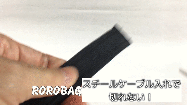 「スチールケーブル」が開口部と固定ベルトに埋め込まれていて、ハサミで簡単に切ることは出来ません。