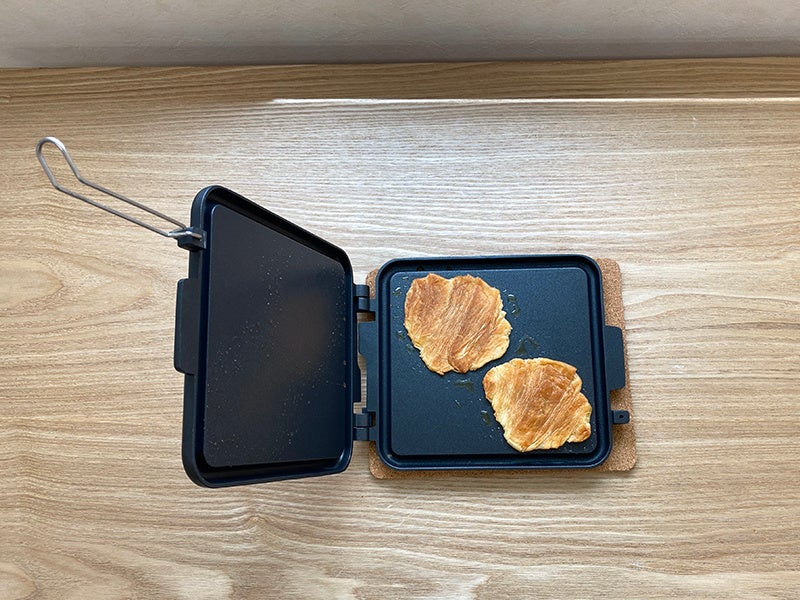オーブントースターで焼くとオリジナル手作り せんべいが作れる、オーブントースター専用のはさみ焼きプレートです。