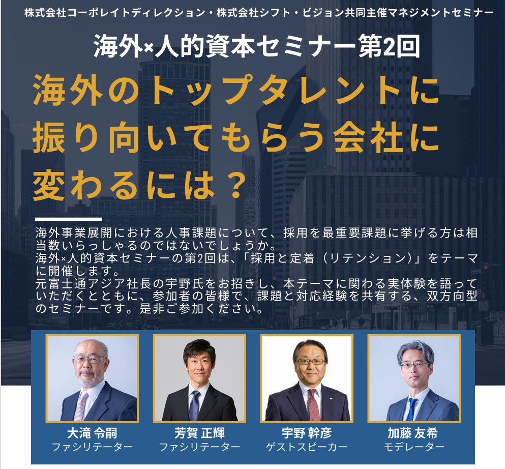 【コーポレイトディレクション(CDI)×シフト・ビジョン】共催セミナー「海外のトップタレントに振り向いてもらう会社に変わるには?」を開催