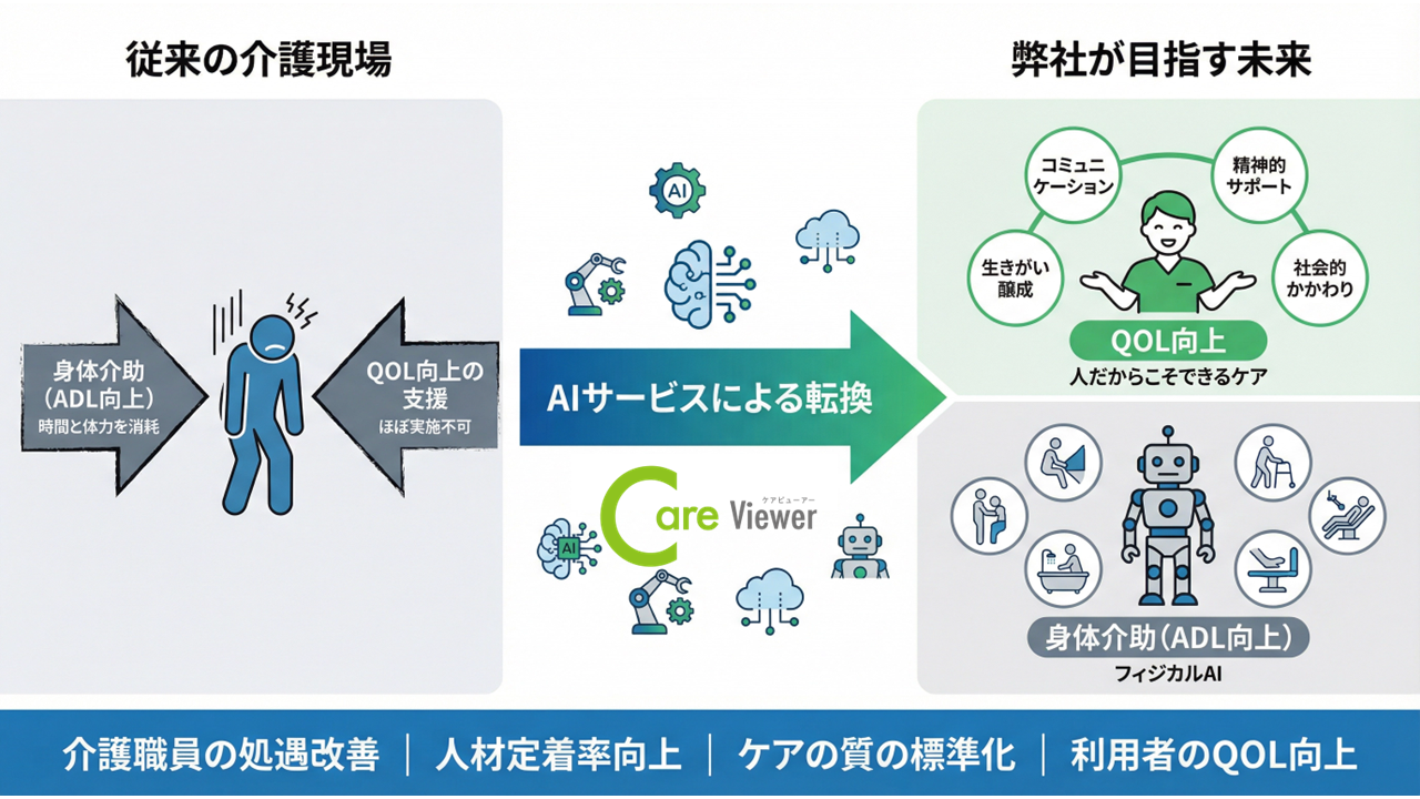 私たちが2026年3月にローンチする健康予測AI、そして2026年中にローンチする個別介護計画書AIは、単なる業務効率化ツールではない。これは、介護業界全体の働き方を根本から変え、介護職員が「人だからこそできるケア」に集中できる環境を創出する、業界全体の転換点である。