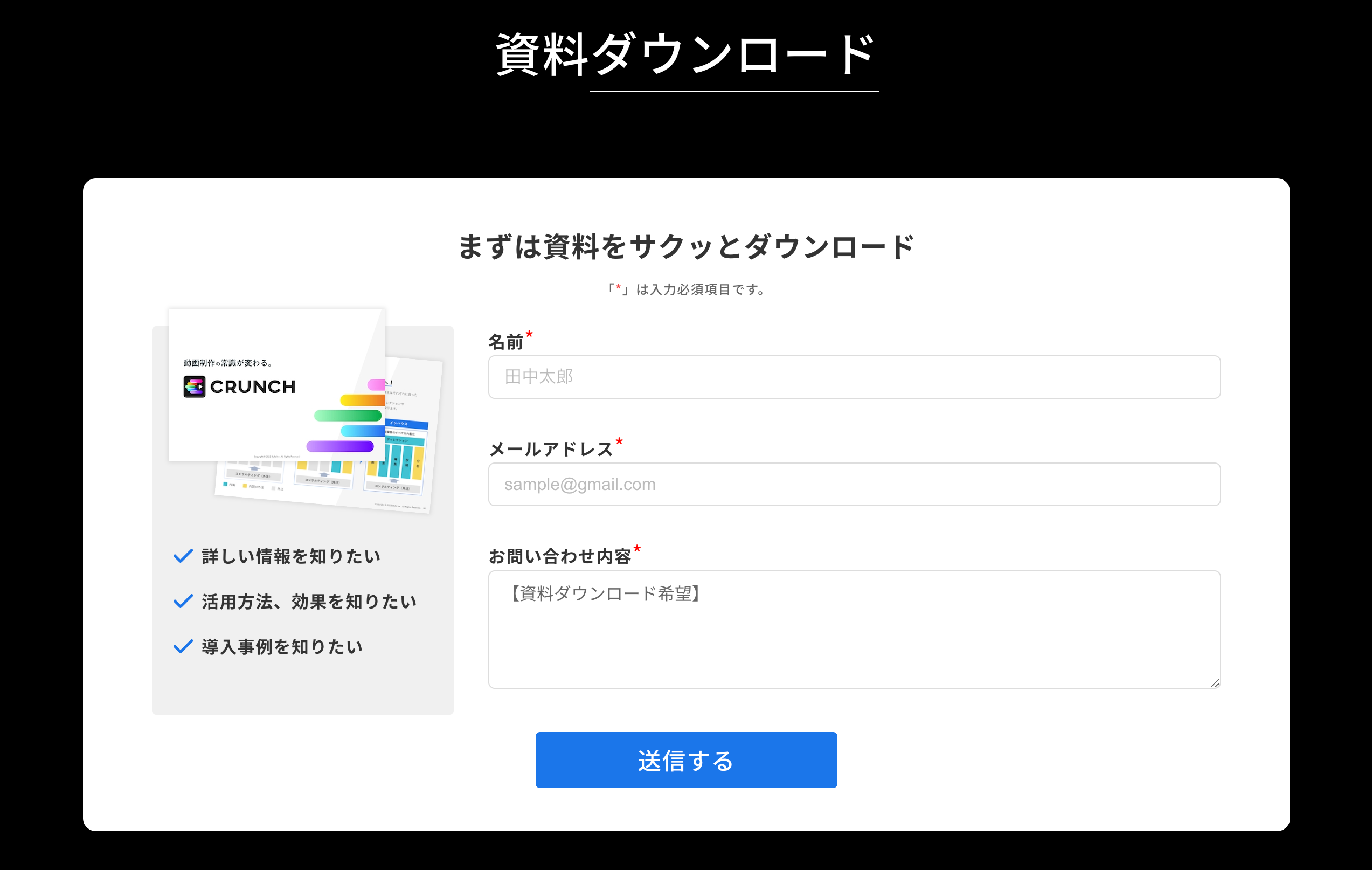 ※ 迷惑メールフォルダーに受信されてしまう可能性があります。「@crunch.sh」の受信を許可してください。