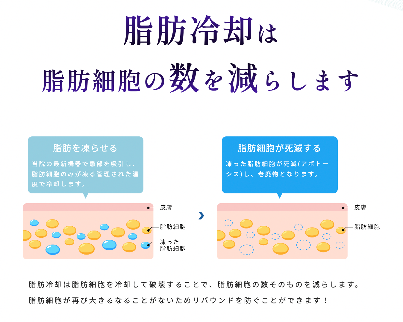 脂肪冷却は脂肪細胞を冷却して破壊することで、脂肪細胞の数そのものを減らします。
