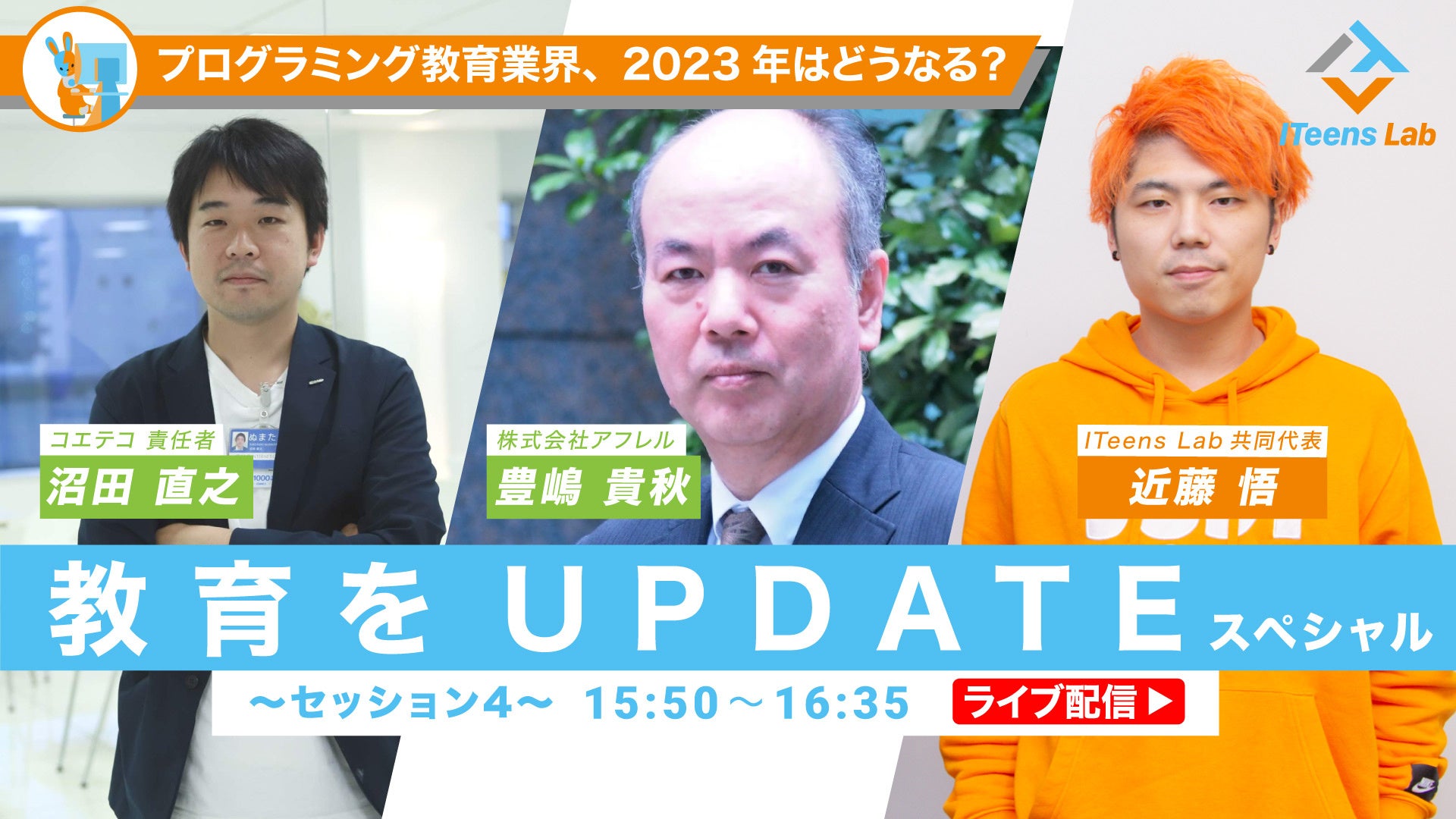 オンライン子どもプログラミング教室ITeens Labは3/26(日)13時より番組『教育をUPDATE スペシャル』をライブ配信。10名の豪華ゲストと教育について様々なトークセッションを実施。