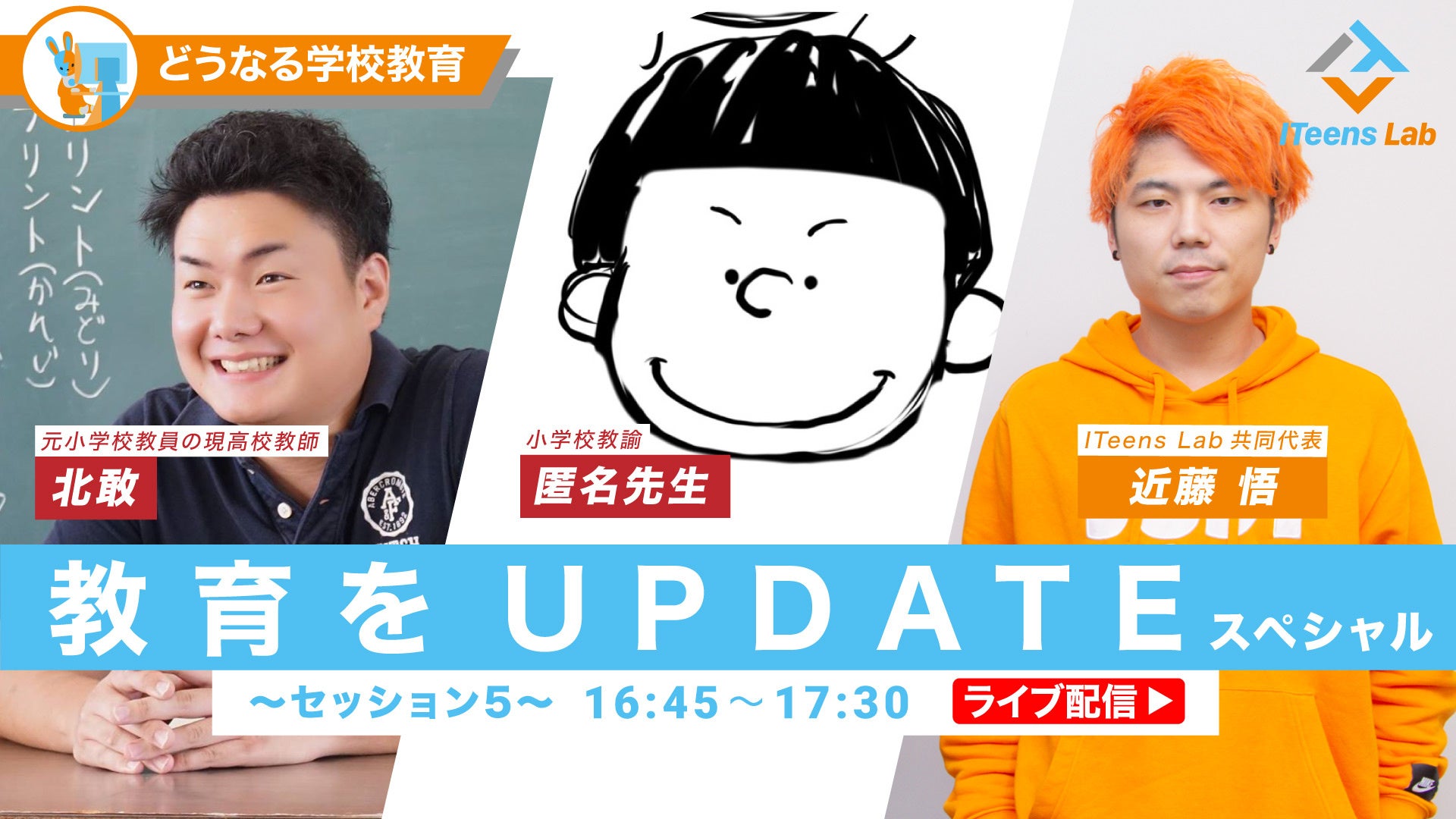 ITeens LabはYouTubeライブ配信にて番組『教育をUPDATE スペシャル』を開催します。10名のゲストと5個のトークセッションを行います。
