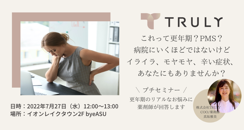 更年期ケアを提供するTRULYがイオンレイクタウンのフェムテックショップ「byeASU」に2022年7月1日から期間限定出店