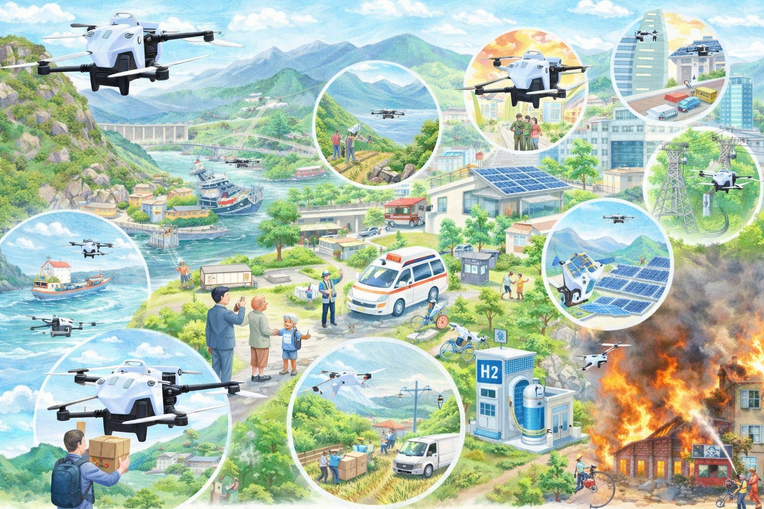 私たちは、その壁を越えるために、長時間飛行を可能にする新たな選択肢として水素を活用したドローンの開発に取り組んでいます。ただし、私たちが目指しているのは、「水素ドローンの普及そのもの」ではなく、ドローンが社会の中で当たり前のように使われ、人々の暮らしや産業を支える存在になることです。