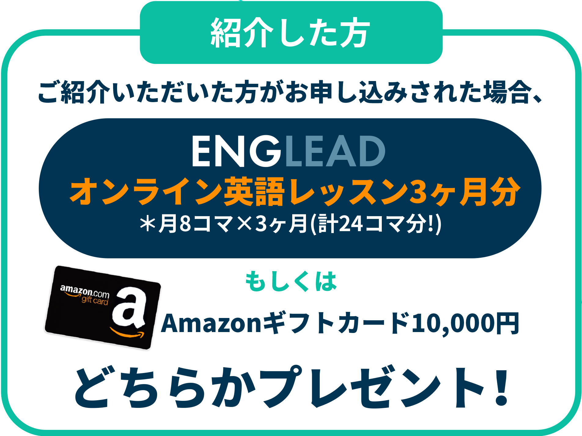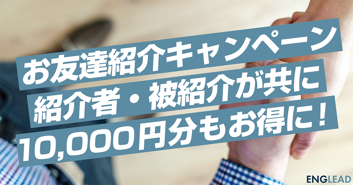 オンライン英語コーチング「イングリード」では、お友達紹介キャンペーンを実施中。紹介者・被紹介者が共に特典を受けることができます。