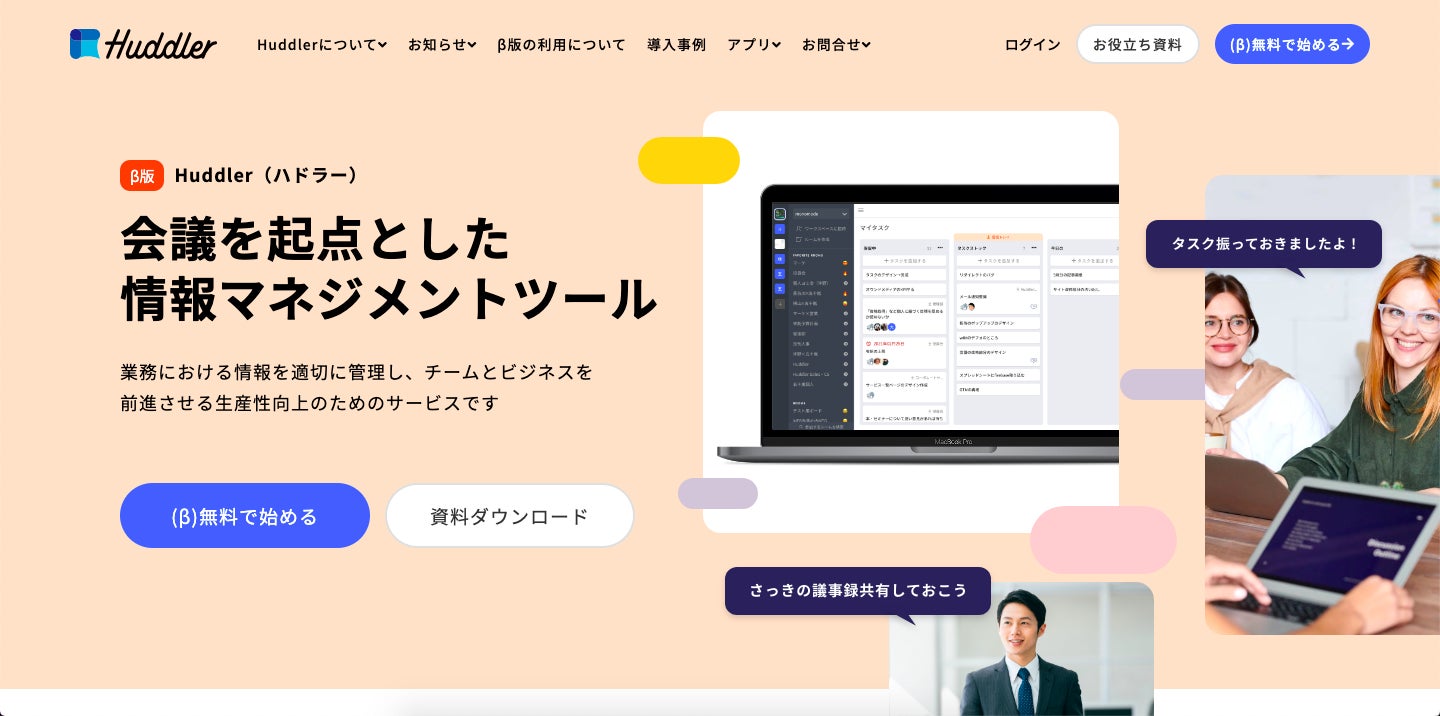会議を起点とした情報マネジメントツール『Huddler(ハドラー)』は2022年以降から新機能を続々と搭載し、情報管理を円滑にしチームとビジネスを前進させます。