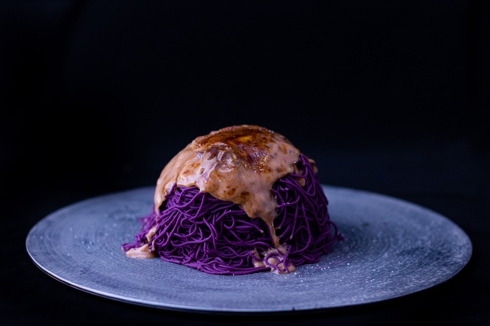 しっとりと焼き上げた紅はるかの焼き芋に、国産の卵を使用して作ったカスタードクリームをふんだんにかけ、グラニュー糖をブリュレしてご提供します。お好みでバニラアイスを添えていただくことで、さらに美味しくお召し上がりいただけます。