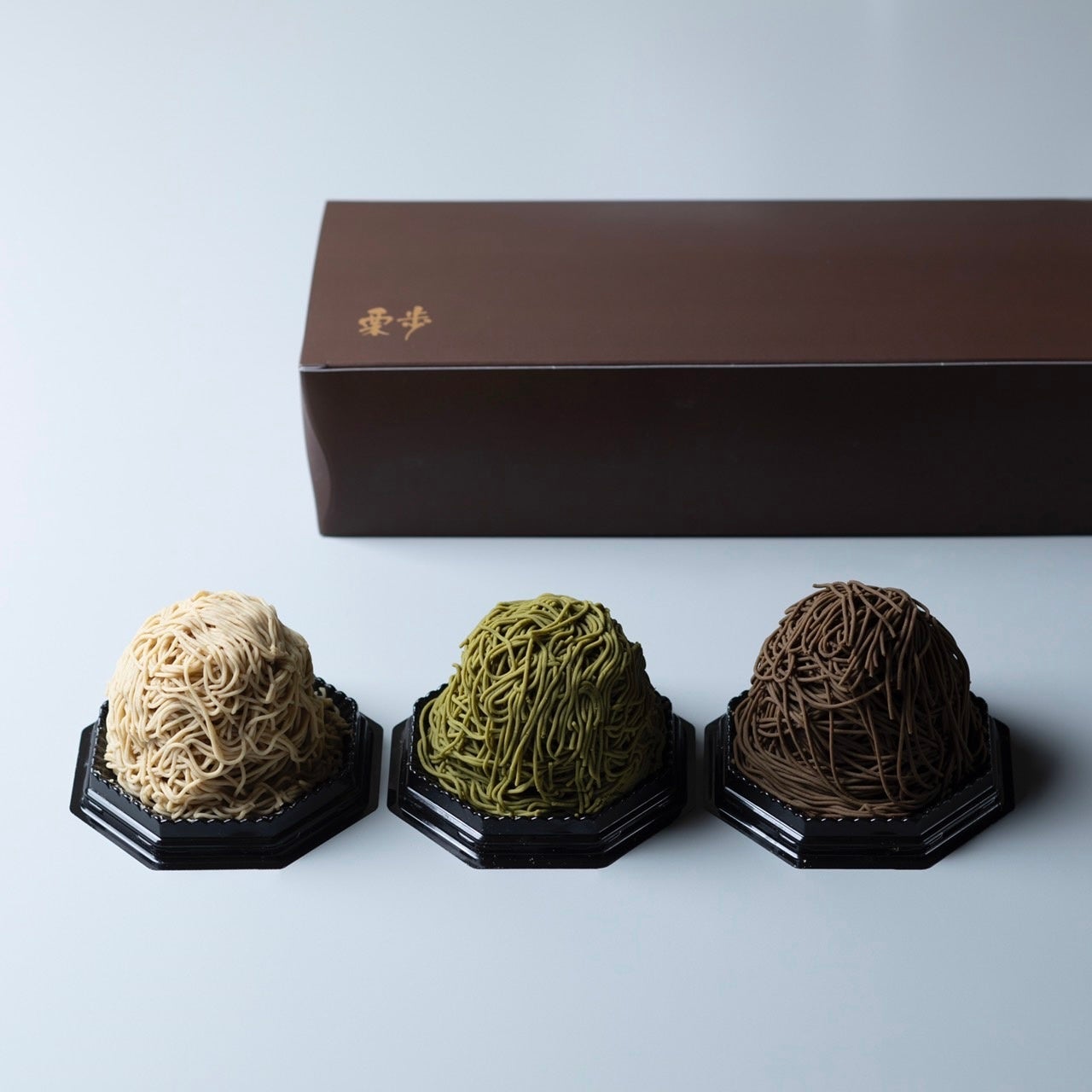 自宅へのお土産にもぴったりな、通常のモンブランよりも一回り小さな可愛いモンブランです。味わいは愛媛県産の国産和栗モンブランをはじめ、和栗の香りとお茶の香りのマリアージュが楽しめる宇治抹茶の濃厚抹茶モンブラン、静岡県産のほうじ茶モンブランの3つからお選びいただけます。