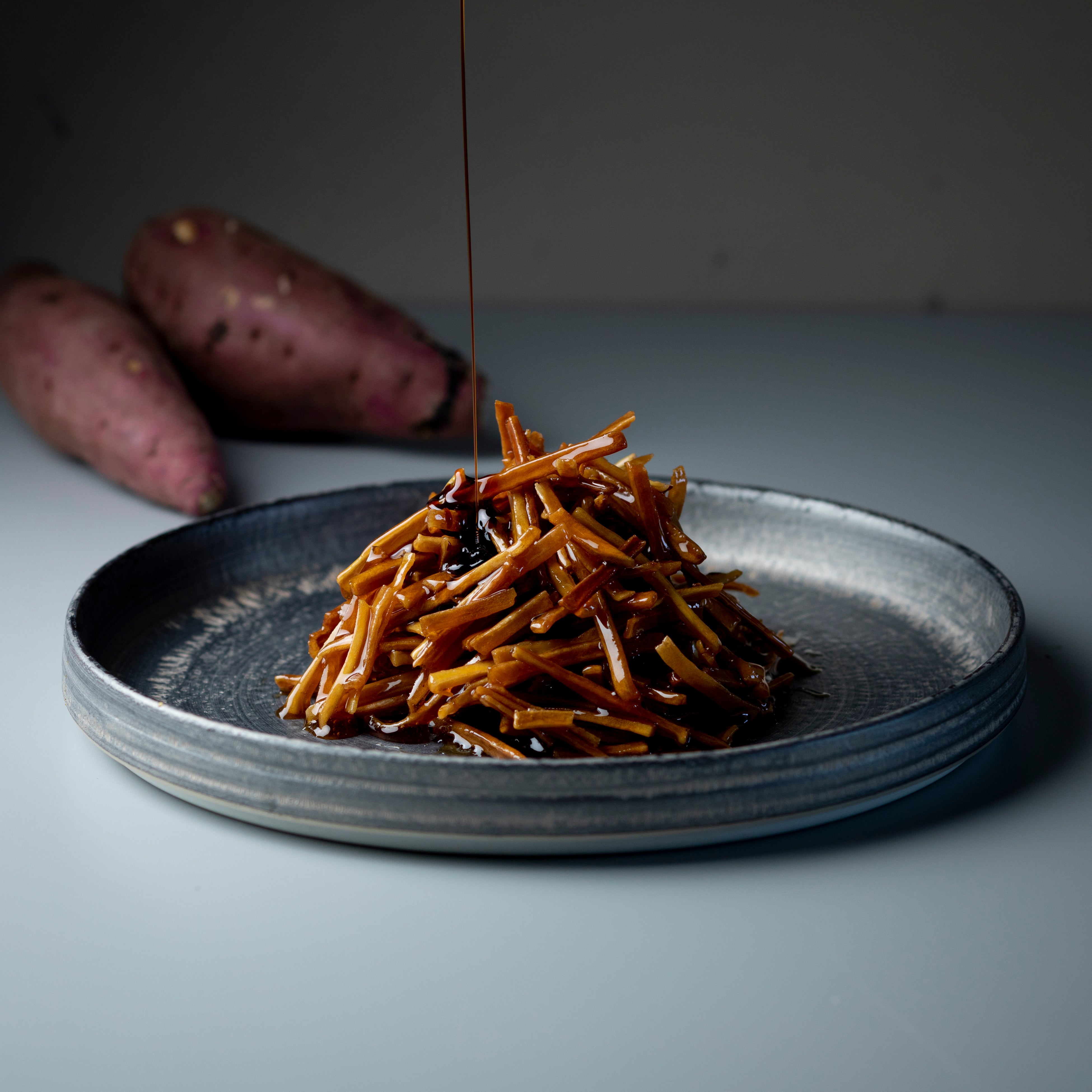 細さ1mmのさつまいもペーストをバニラアイスの上にたっぷりかけた、東京観光のお供にもぴったりな食べ歩きさつまいもスイーツです。味わいは茨城県産の紅あずまと、鹿児島県産の綾紫芋の2種類からお選びいただけます。