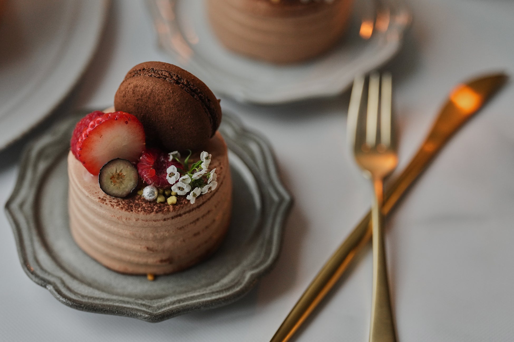 タンザニア産のカカオ豆を使用した、濃厚でなめらかな口当たりと、すっとほどけていくような食感が特徴のガトーショコラ。タンザニアのチョコレートならではの果実のような心地よいフルーティーさに合わせるように、クランベリーやピスタチオをトッピングしています。