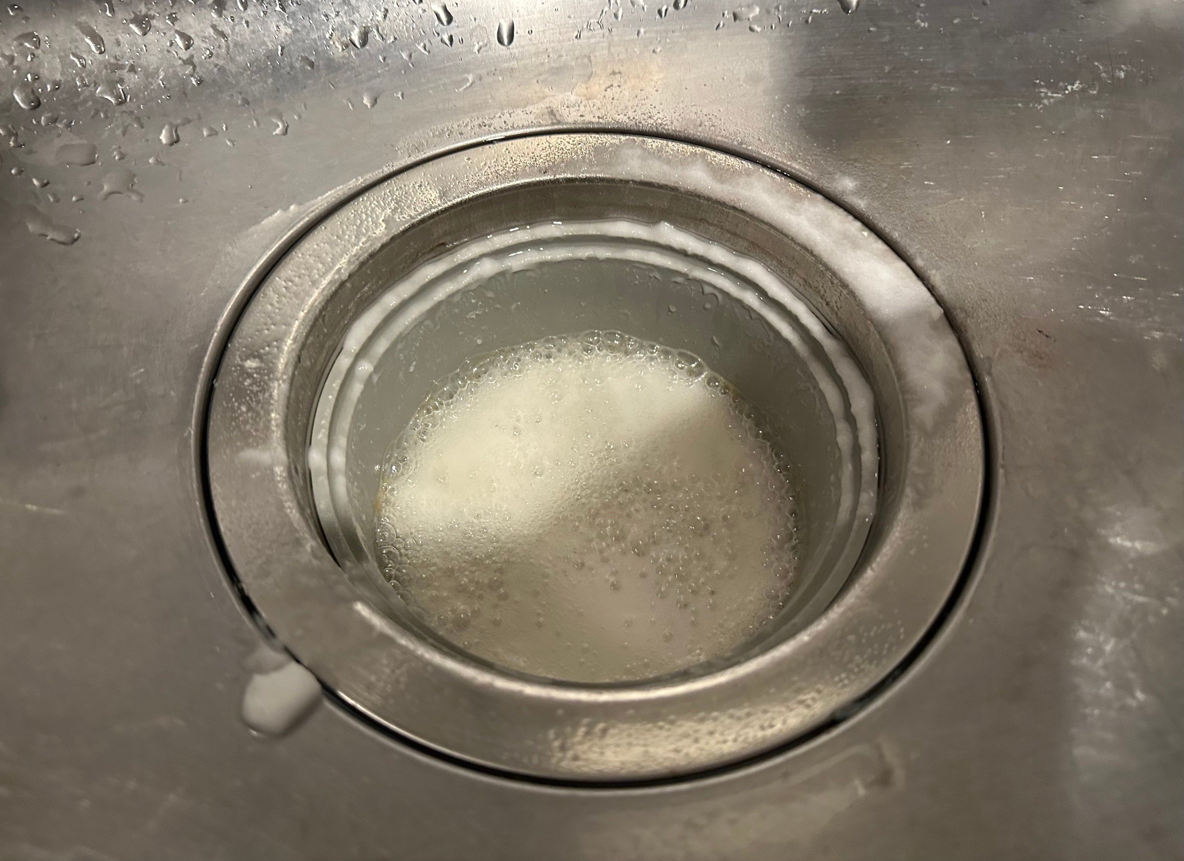 「排水溝の奥はブラシが届かないので掃除がしにくい場所ですが、重曹+酢を使えばカンタンにお掃除完了。“酢=水垢などの汚れを落とす” “重曹=油汚れが落ちやすい+においを吸着する”という効果があります。この2つを合わせると化学反応が起こり、二酸化炭素の泡が発生。この泡が、排水溝のぬめりや汚れを落としやすくしてくれるのです。」