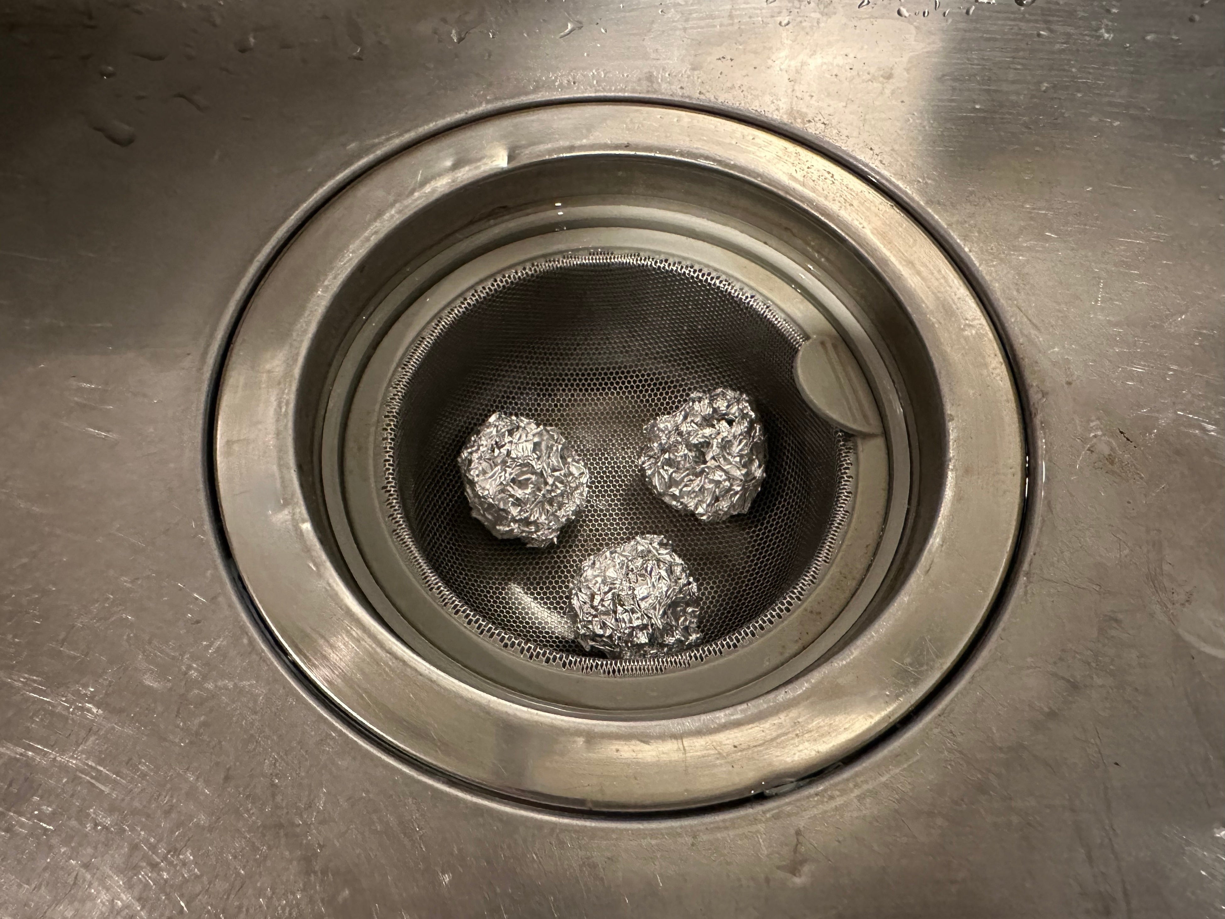 排水溝に2~3個入れる。(アルミホイルは使用済みのもので◎)