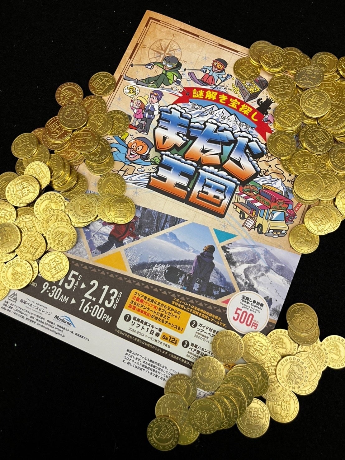 参加者は参加キットに書かれた謎を解いて「スキー場内」に隠された宝箱パネルを探します。 1つの参加キットで初級レベルと上級レベルの2つコースが遊ぶことができ、 スキーやスノーボードを楽しみながら、ご家族やカップル、ご友人同士でもご参加いただける内容となっております。またどなたでも楽しめるよう、英語版のご用意もあります。