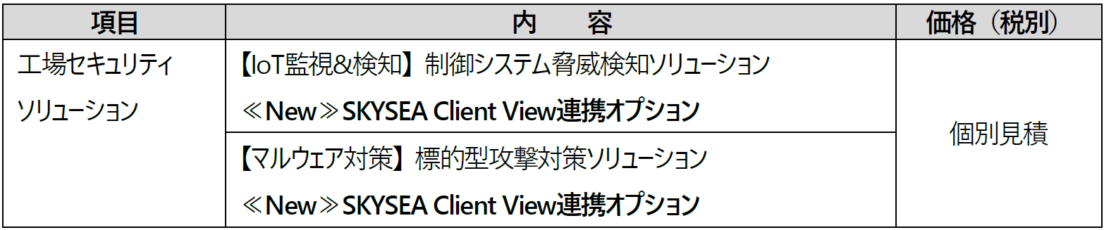 ■工場セキュリティソリューションのラインアップ・価格