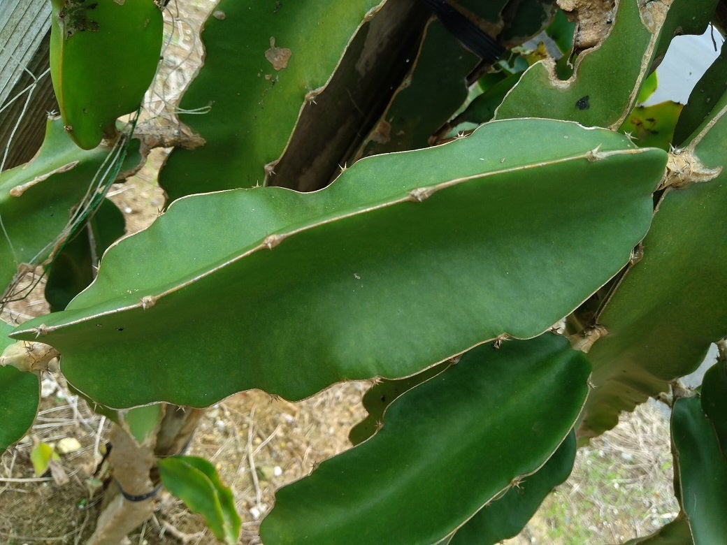 ドラゴンリーフ細胞液の原料となっているドラゴンフルーツ葉茎は、ドラゴンフルーツ収穫後に残った葉茎を原料としていますが、この葉茎は廃棄対象となっていた農業廃棄物でした。弊社はドラゴンフルーツ葉茎中の植物細胞液を世界ではじめて商品化し、製品としての優れた特長を明らかにし化粧品原料として開発しました。