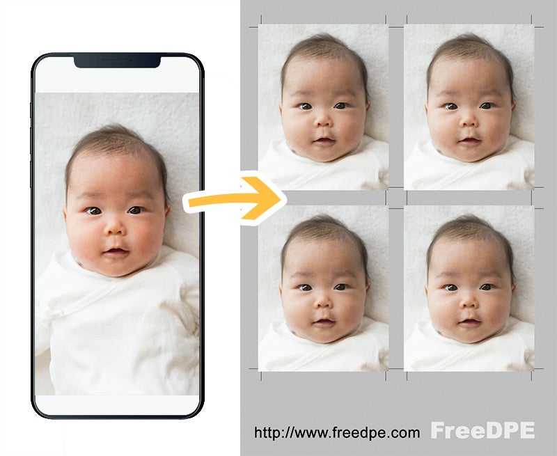 写真をアップロードして顔の位置を合わせるだけで、パスポート規格サイズの証明写真を作ることができます。自宅でスマホを使って何度でも撮り直しができるため、証明写真機や写真スタジオでの撮影が難しい新生児、乳児、幼児のパスポート写真を作るのに最適です。