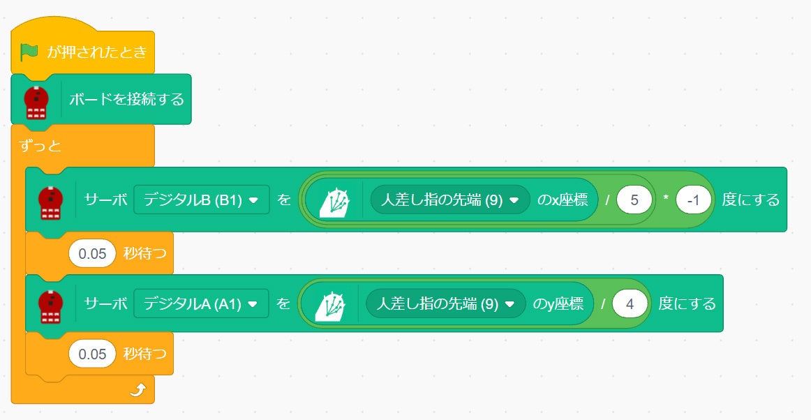 多くの先生・生徒が触った事があるScratchからコントロール出来るよう専用ブロックを用意しました。