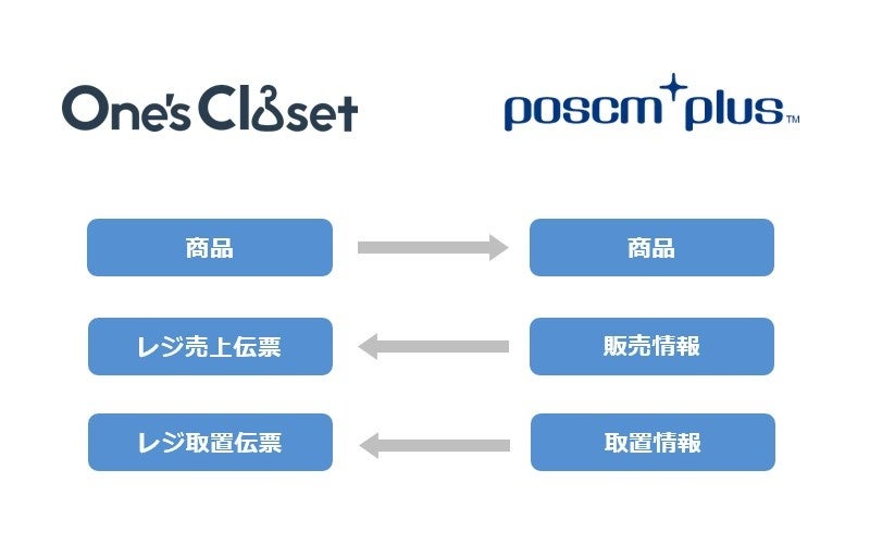アパレル向けクラウド販売管理システムの「One'sCloset」、小売特化ハイブリッドクラウドPOS『poscm_plus』とのサービス連携機能を提供スタート