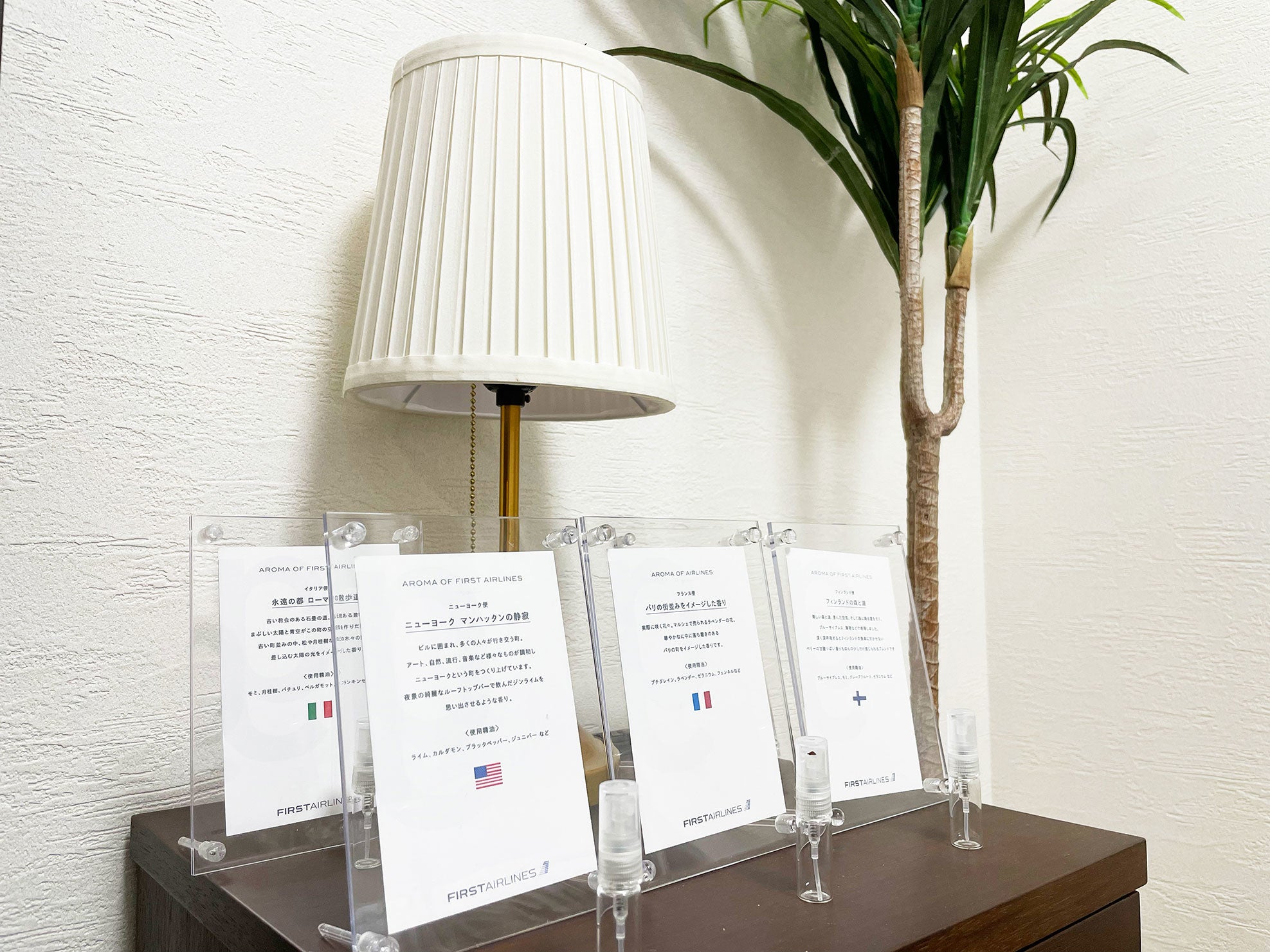 パリ・ローマ・ニューヨーク・ハワイ・フィンランドをイメージした当ホテルオリジナのルームフレグランスをお楽しみいただけます。また、ルームフレグランスはアメニティとして持ち帰ることが可能です。様々な国の香りで癒されながら各国を旅するような夢を誘います。