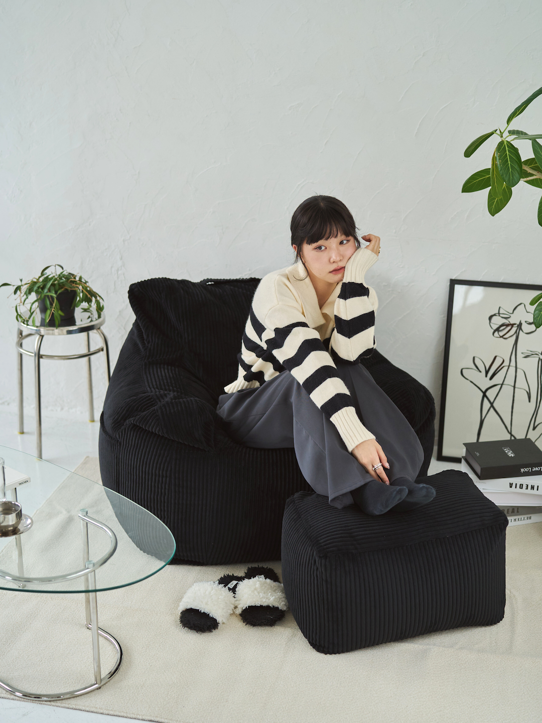 体をやさしく包み込むフィット感が人気の1人掛けビーズソファは、SNSで話題を集め初回発売時には1時間に100台が売れた人気商品です。