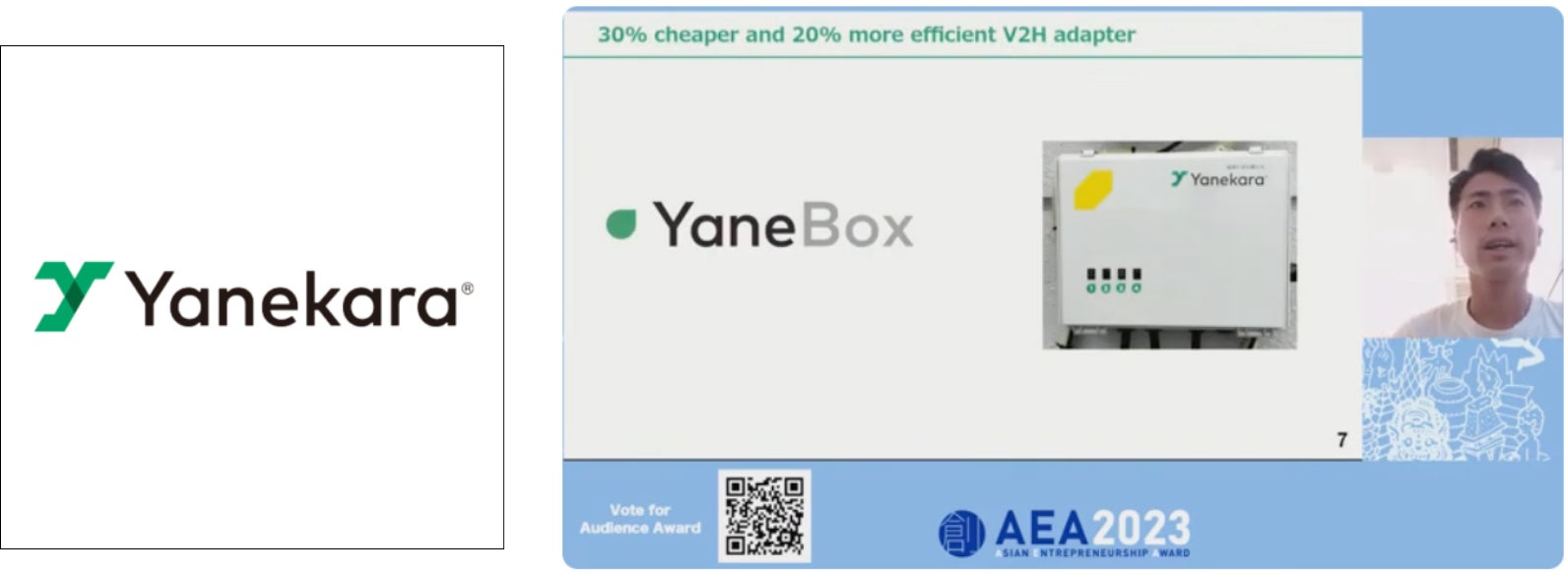 太陽光エネルギーで電力を供給かつ蓄電可能なEV充電器を開発したYanekara Inc.(日本)が準優勝と柏の葉賞を受賞