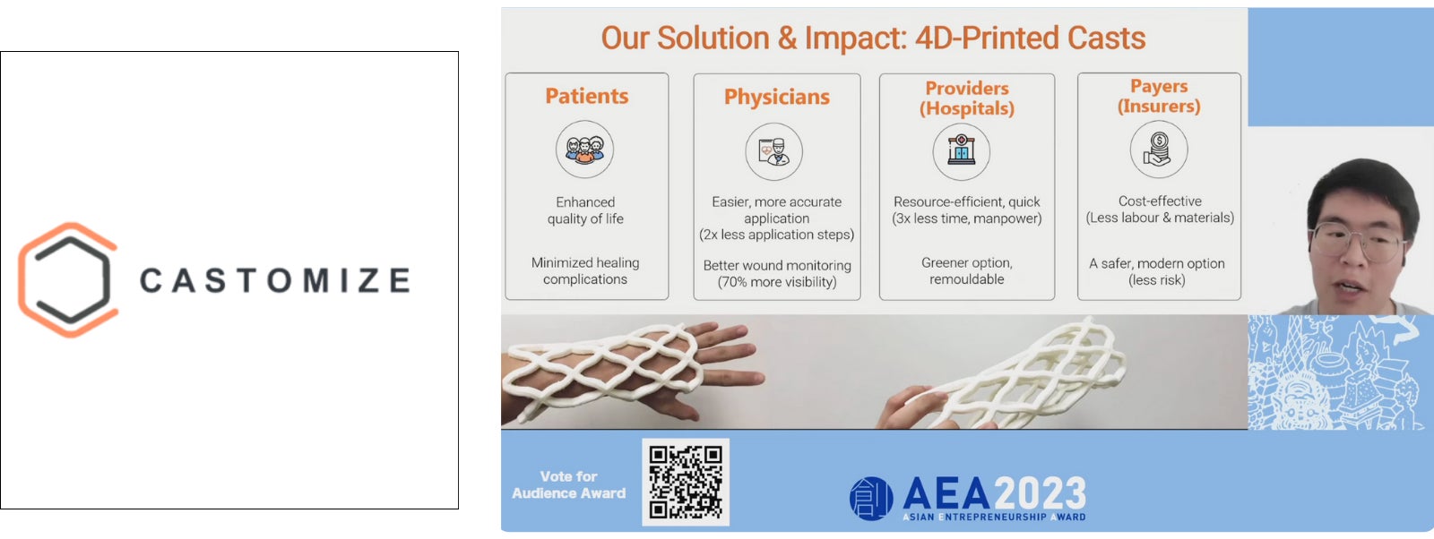高度な製造技術とカスタマイズされたポリマーを使用した、患者や医療従事者にとって快適性、利便性、効率性を追求した4Dプリントギプスを開発。最小限の資源の使用とプロセスを実現し、低コストで医療廃棄物を減少し環境にも優しく持続可能性が高い。