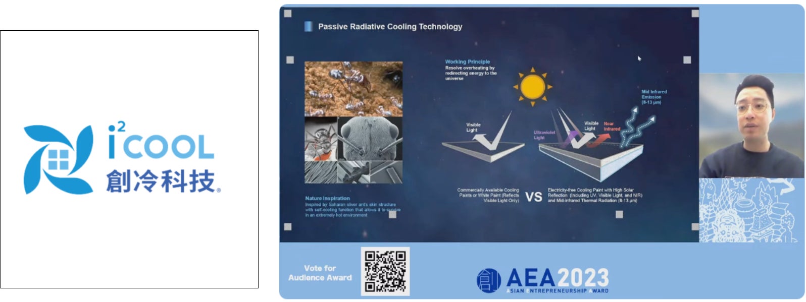《アジア各国・地域の起業家が競う柏の葉が舞台のイノベーションアワードAEA2023》I2Cool Limited (香港)が優勝、太陽光の反射と熱放射に優れ省エネと脱炭素へ貢献する高性能冷却塗料を開発