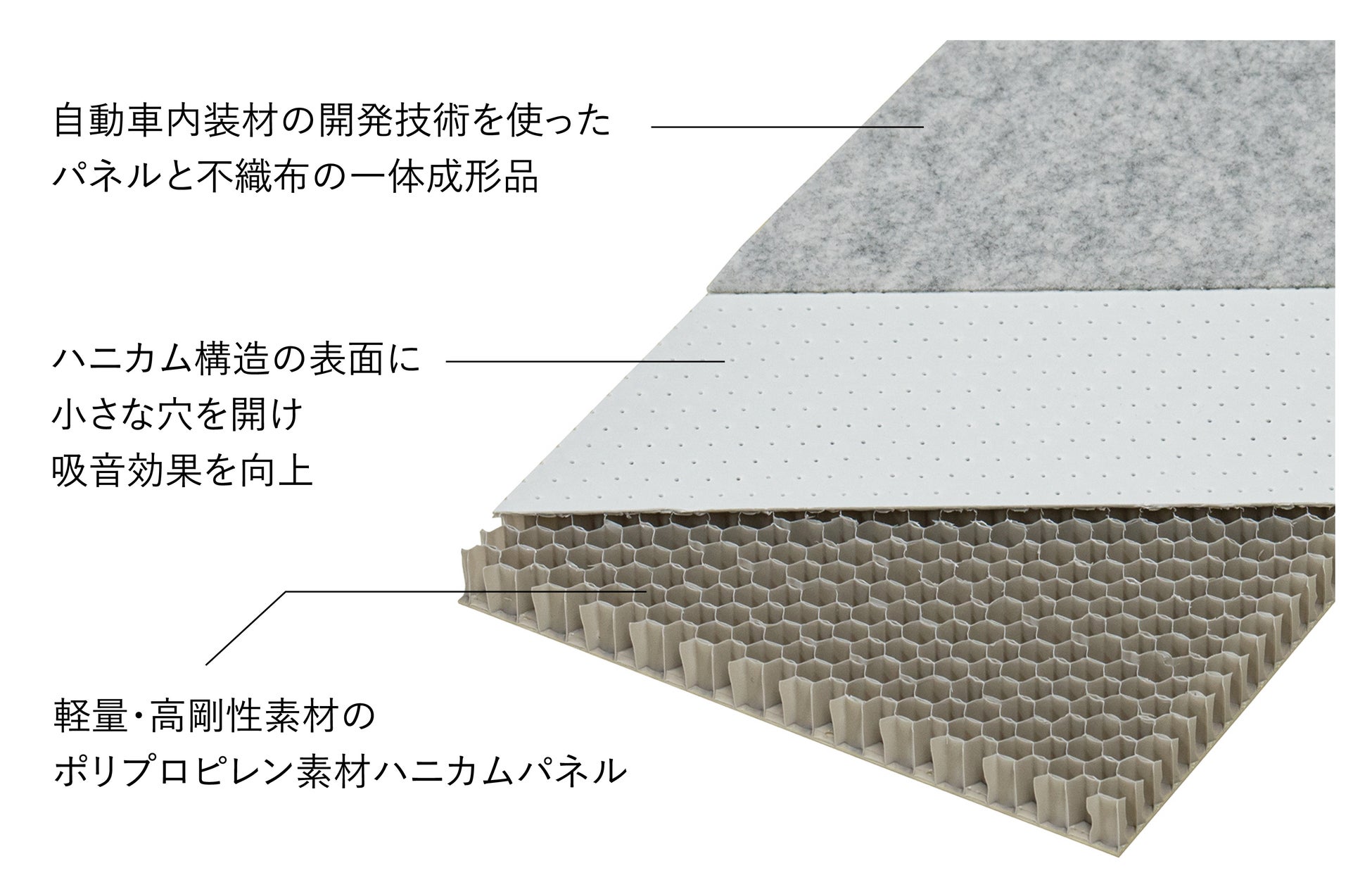 テクセルSAINTはハニカムパネルの表層に微細な孔を開けることで、音を反射させにくい「吸音効果」の特性を持つ極めて軽量な吸音パネル。現在JAXA(宇宙航空研究開発機構)・IHI、当社の3社で「航空機エンジン用吸音ライナパネル」の研究開発を行っております。また2017年からは、この優れた吸音性能による工場など機械設備の騒音対策商材として販売を開始し、これまで約800例以上の対策を実施しております。■テクセルセイントホームページ