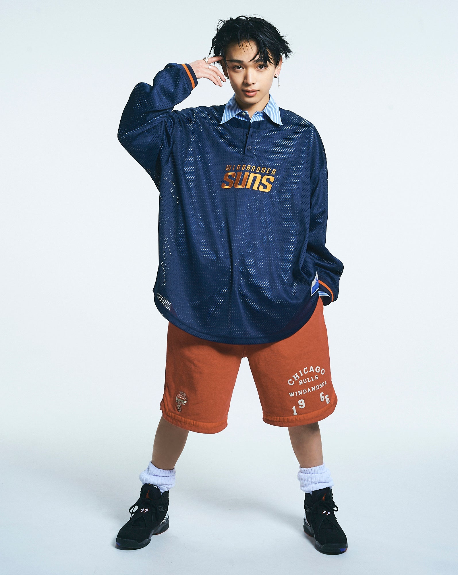 ⼈気モデルのemmaと、⼈気タレントの宮世琉弥がバスケットボール✖ストリートスタイルを着こなしたLOOKが完成しました。