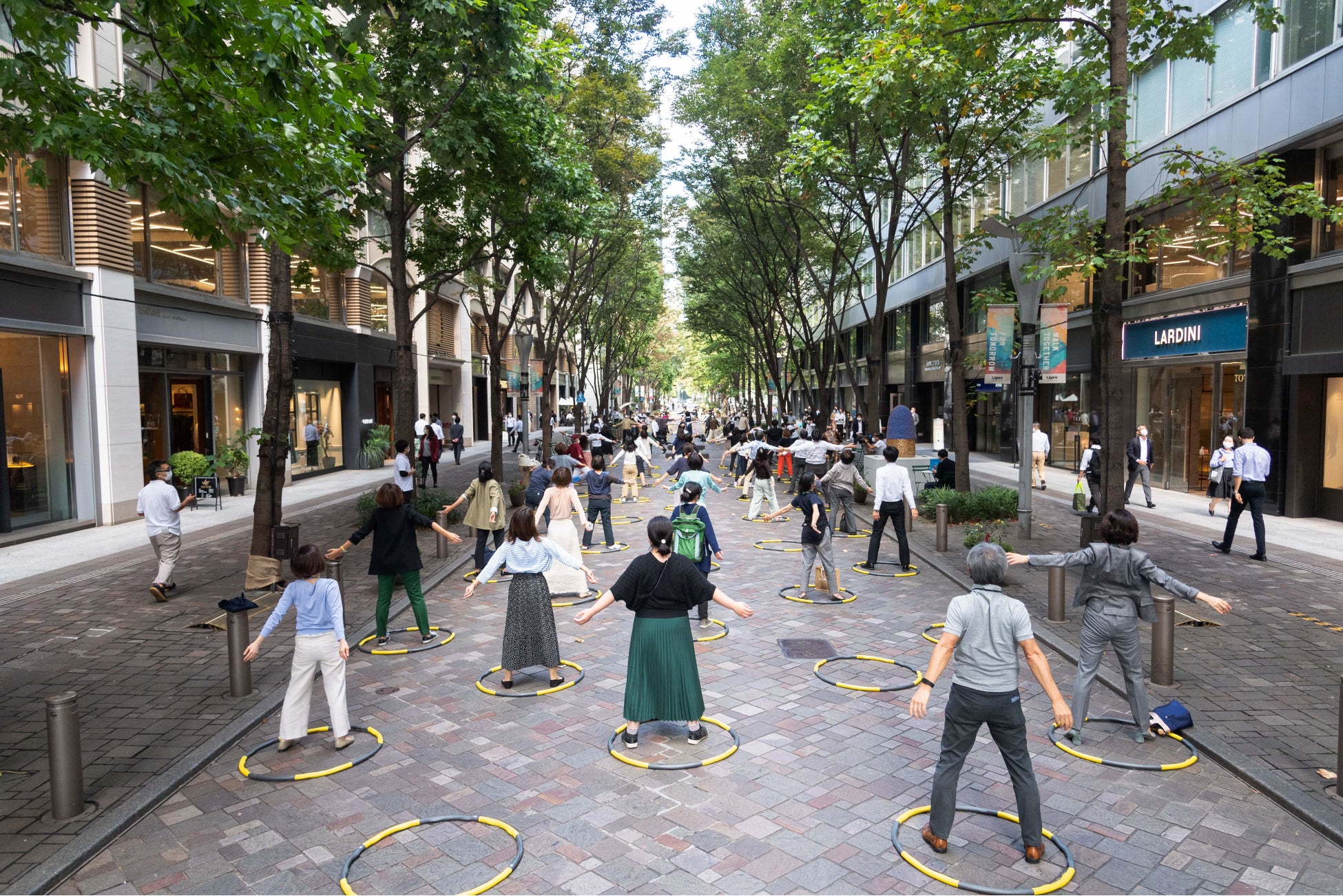 オフィスワーカーの健康促進を目的に、大丸有エリアでラジオ体操を開催。12回目となる今回は、例年よりも回数を拡大し10回の実施