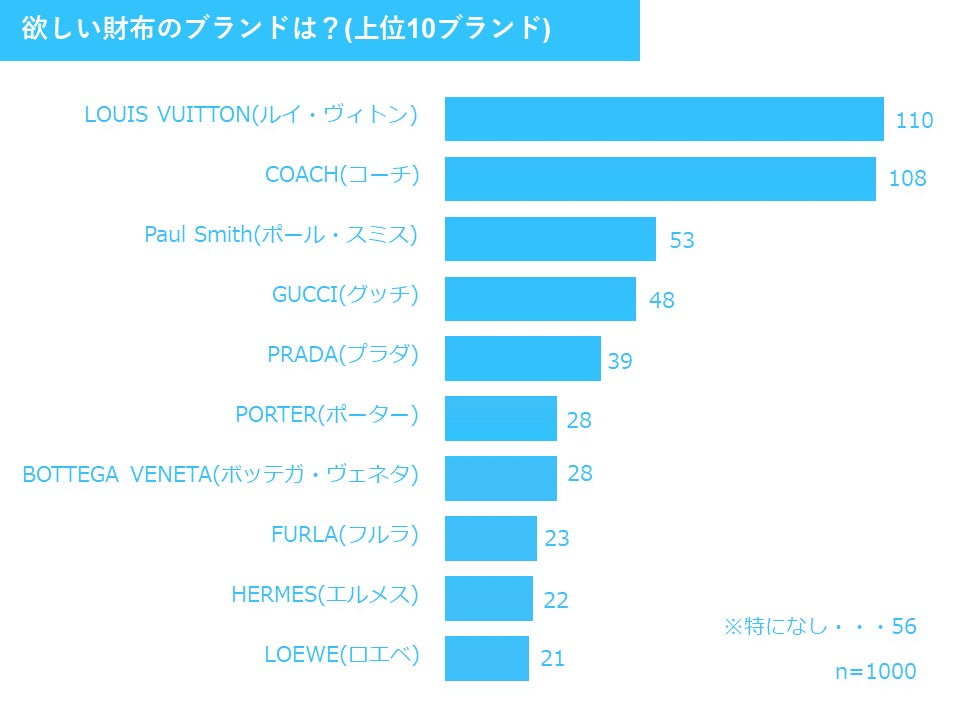 3位はPaul Smithとなりましたが、「ブランド物に興味がない」や「ブランドではなく使いやすさで選ぶ」などの理由で、「特になし 53票」が3番目に多い回答となっています。
