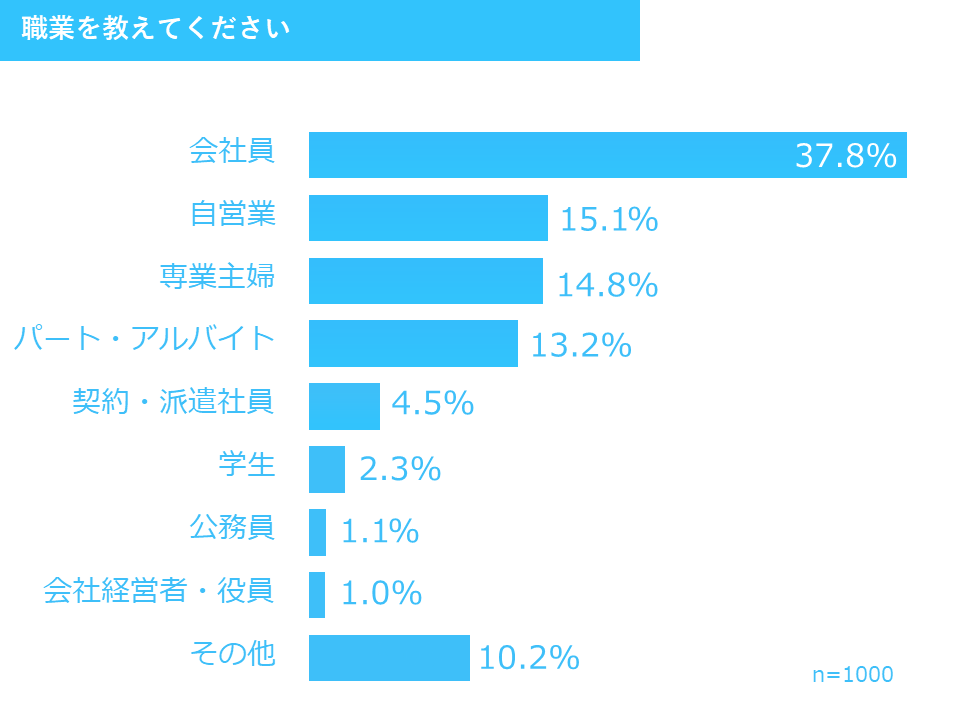 2万円未満を合計すると51.6%と半数以上を占めました。特に男性で顕著ですが、「2万円以上~3万円未満」が最も多いと予想していましたが、思っていたより購入予算は低かったです。