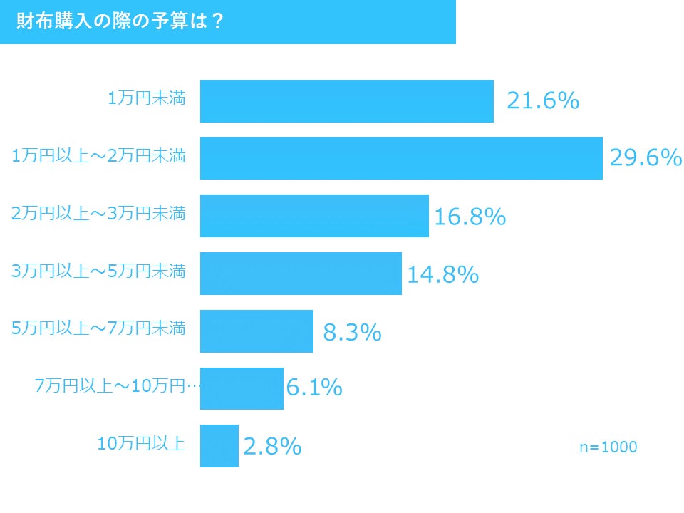 財布の購入予算は1万円以上~2万円未満が29.6%と最も多い