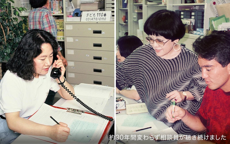 まだ携帯電話が普及していない、電話は一家に一台の時代。「大人たちのもの」だった受話器を手に、緊張しながら電話をかけてきた子どもたちの多くは、その時の胸の高鳴りと共に今も「子ども110番」を大切に覚えてくれています。