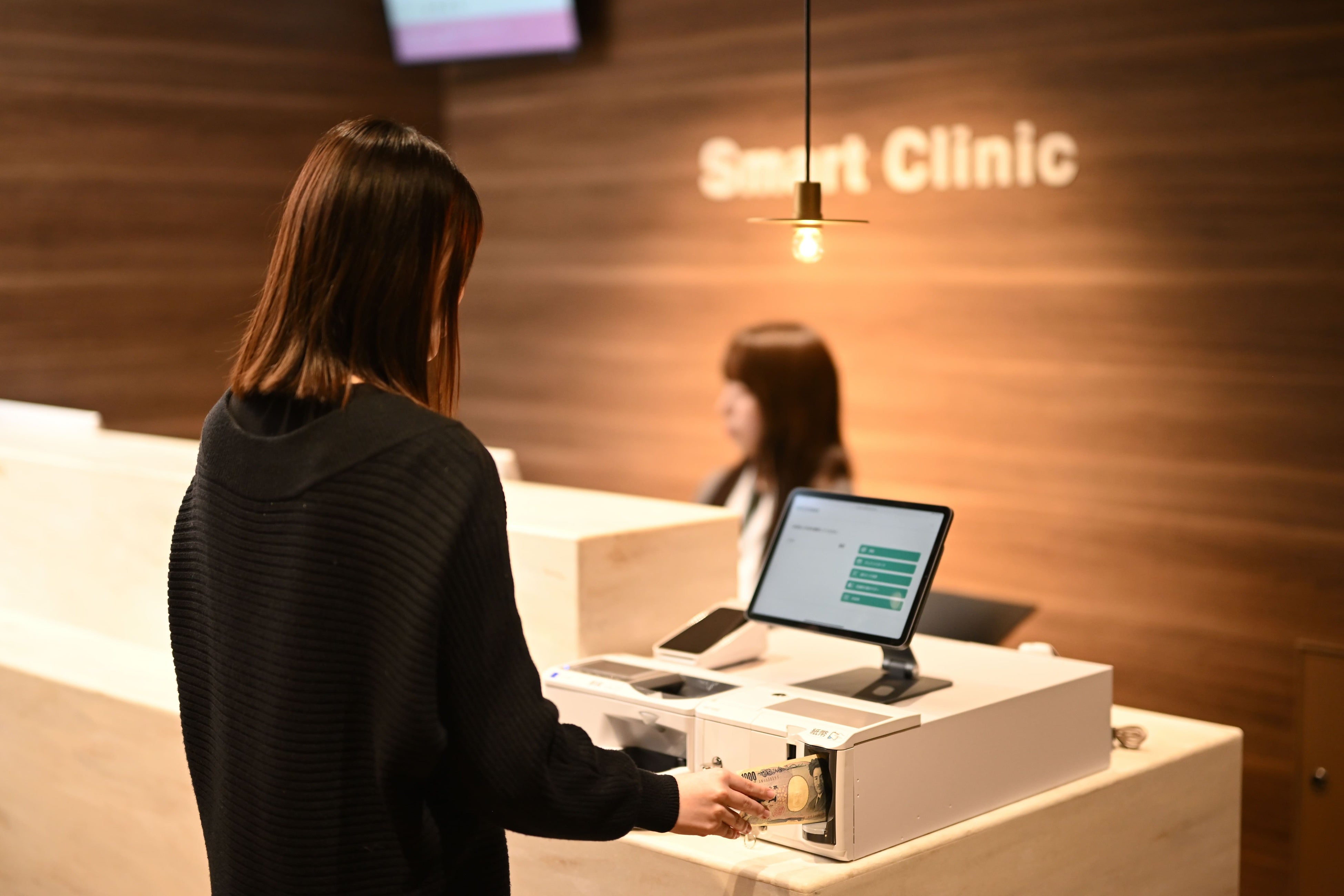 スマクリステーションは、クリニック・診療所の業務効率化に寄与するWEB予約、WEB問診、会計ソリューション(自動精算機・つり銭機)を取り揃え、さらに各システムを電子カルテと連携することで、予約、受付(チェックイン)、問診、電子カルテ入力、会計決済までの一連の受付業務・患者フローを一気通貫で再現した業界初の体験型ショールームです。