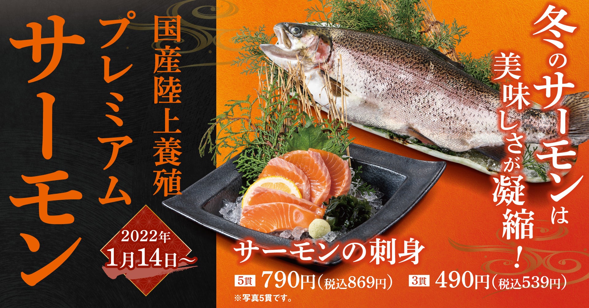 陸上育ちの国産養殖サーモン『プレミアムサーモン』フェア!!「はなの舞」「さかなや道場」など約300店舗にて1月14(金)より開催。