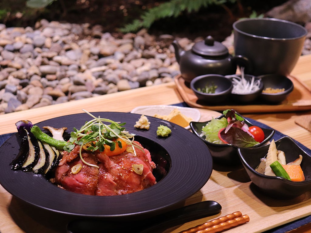 リアン茶屋の看板メニューは、リアンコーポレーション代表が自ら考案した「ローストビーフ丼 〜極〜」です。このメニューにはミニサラダ、筑前煮、本日のお茶、プチデザートがセットで付いており、お茶漬けとしてもお楽しみいただけます。