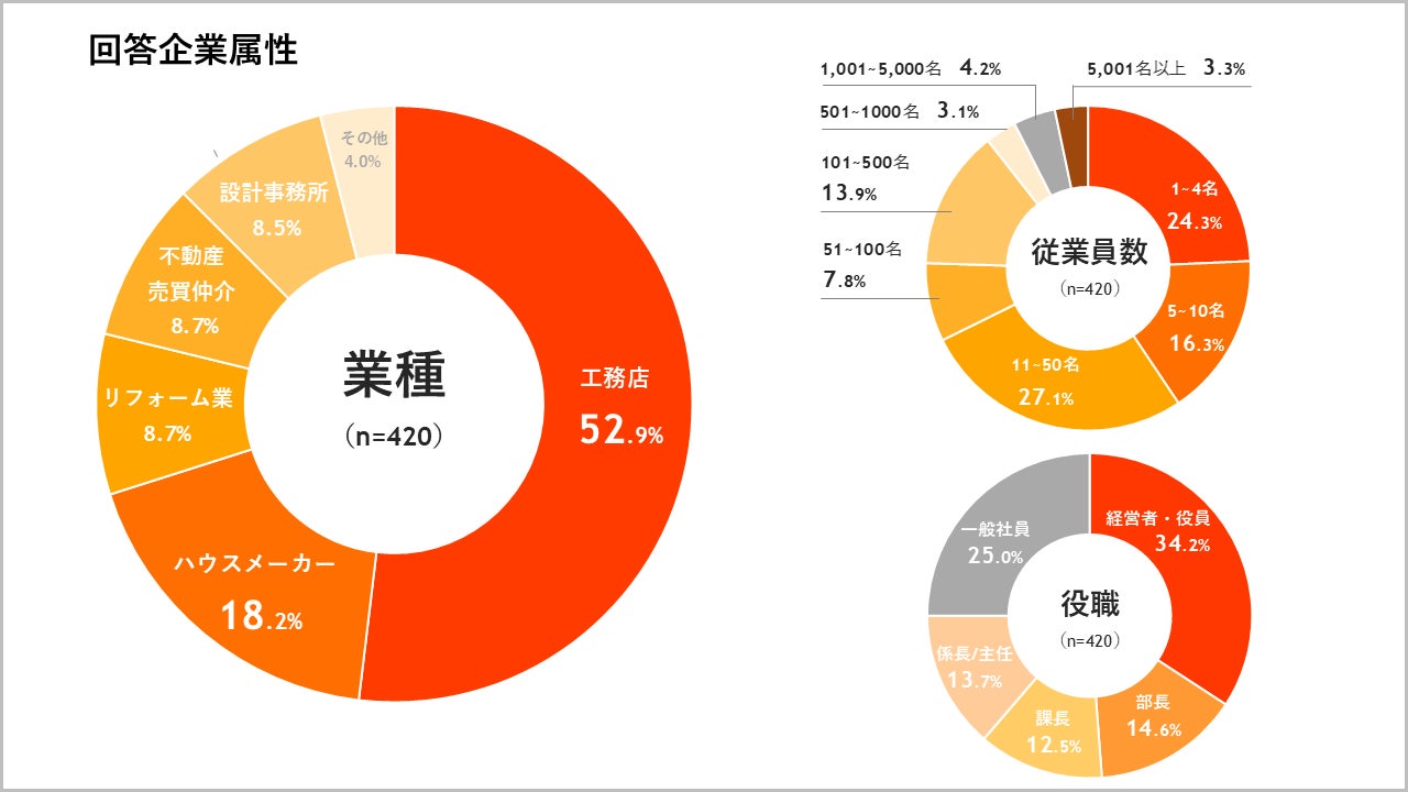 以下の住宅メディア・住宅テック8社は、住宅関連業に従事する420名に対して行ったアンケート「住宅業界のDX推進状況調査」の結果を発表いたします。