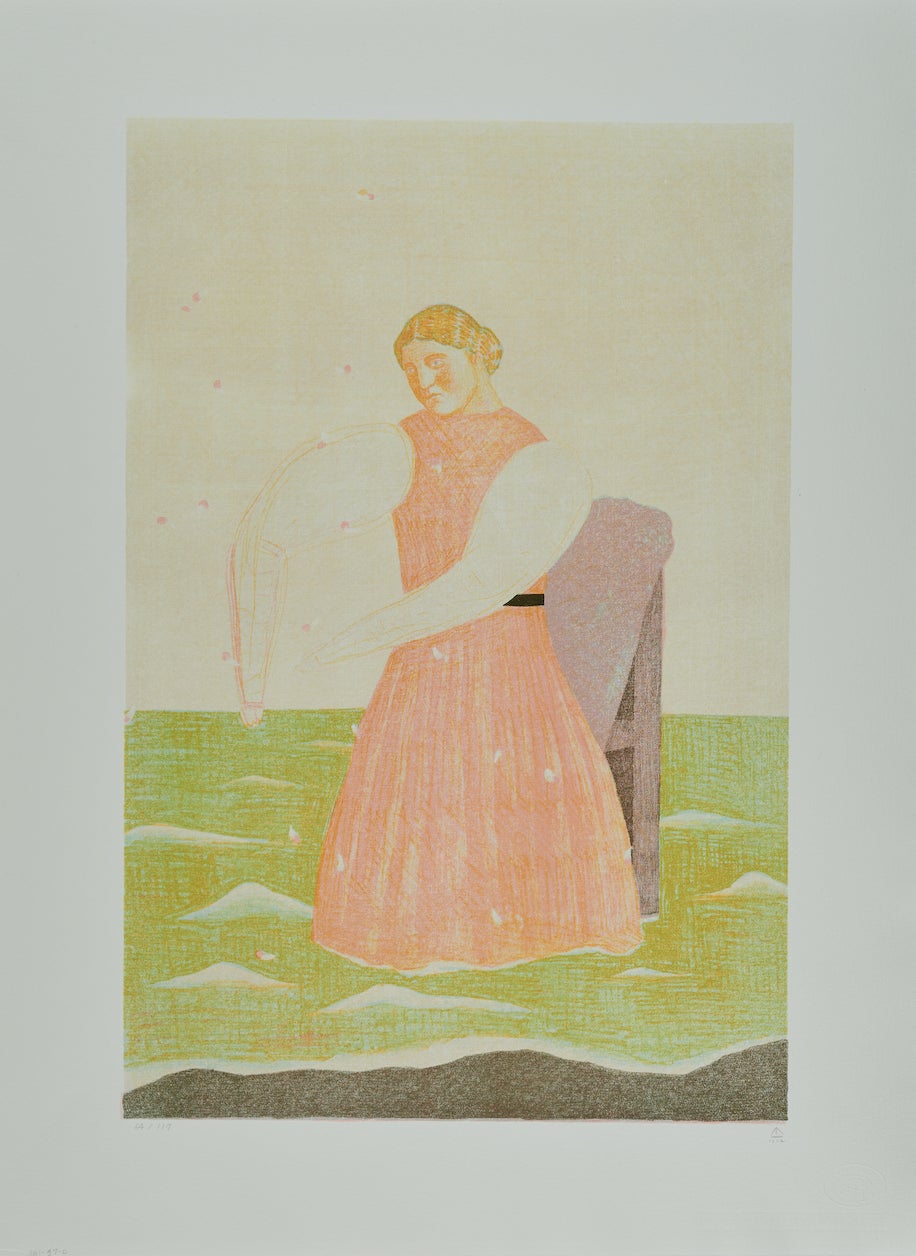 本展覧会が4月から5月にかけて開催されることからタイトルを『春の音色を聴く』としました。有元利夫は音楽を愛しました。今回のメインイメージは作品『Les QUATRE SAISONS』の中の1点の春をテーマにした作品です。本作品がヴィヴァルディの『四季』へのオマージュであることは言うまでもありません。会期中はバロック音楽の演奏会を開催する予定です。