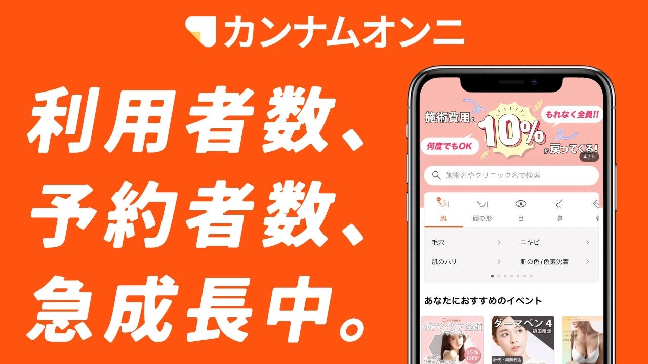 【①月間利用者数前年比200% ②予約数前年比580% ③70万ダウンロード突破】国内最大級の美容医療・整形アプリ「カンナムオンニ」が急成長中。