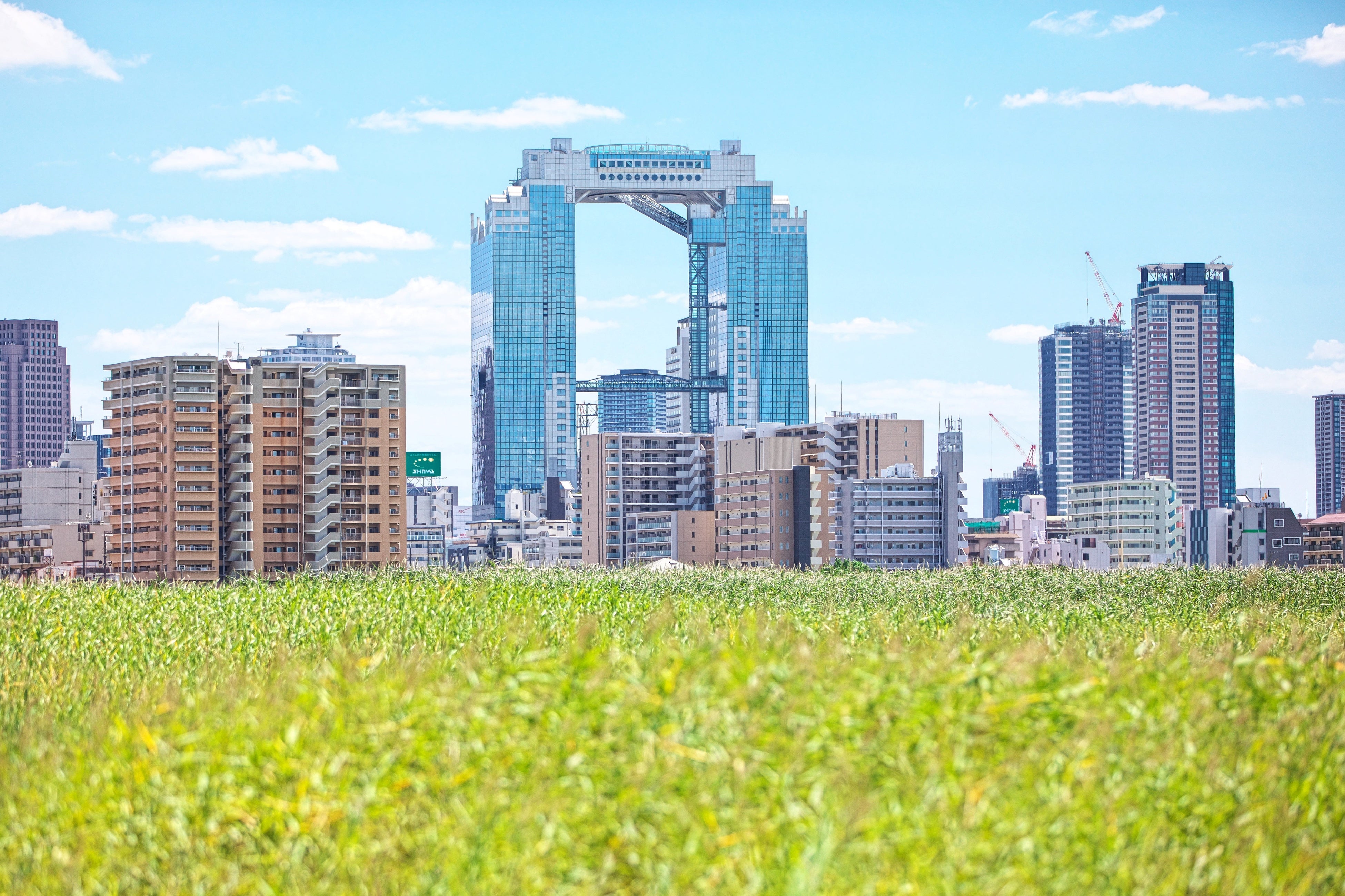 梅田スカイビルは、2つのビルが屋上を含む上層部「空中庭園」でつながる独特のフォルムの連結超高層ビル。