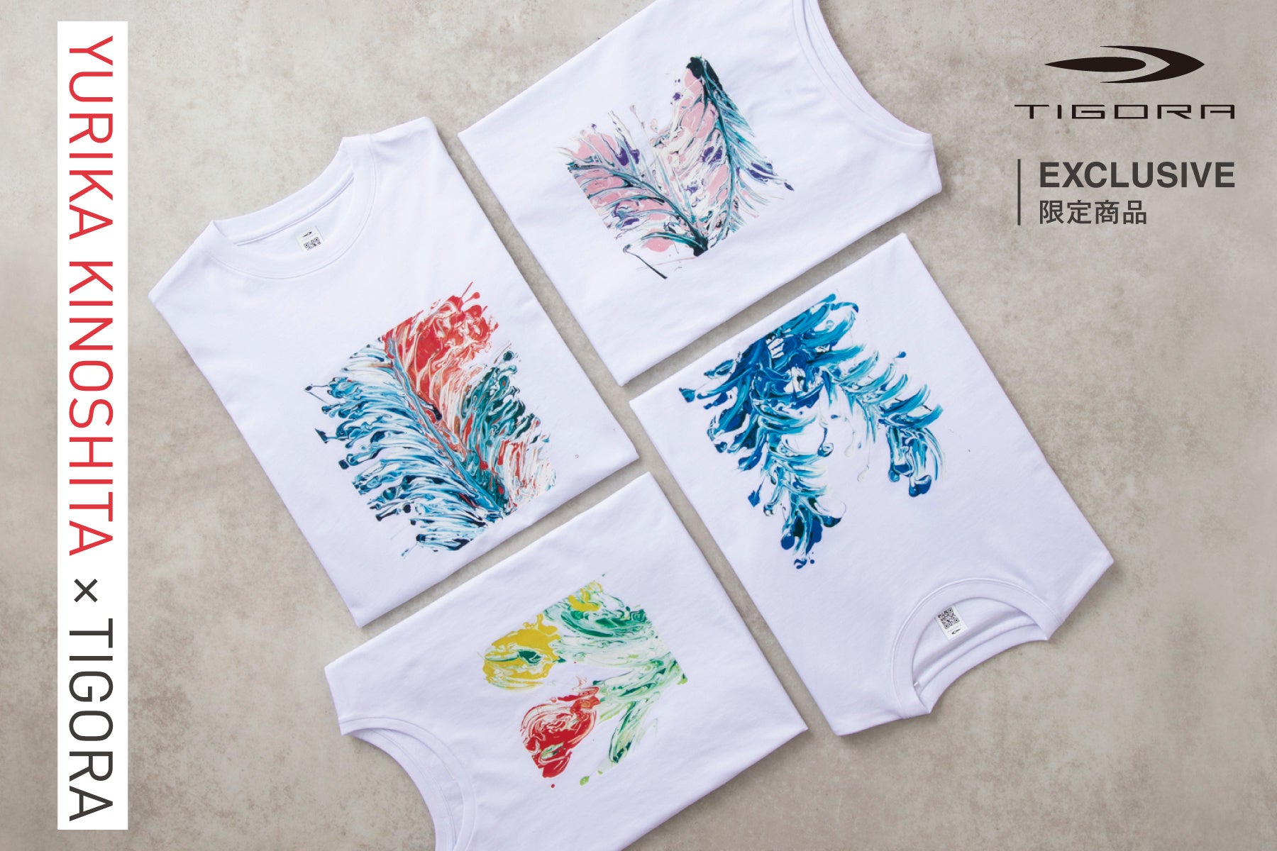 本展で展示される作品は、アルペンプライベートブランド「TIGORA」とのコラボレーションアパレル『YURIKA KINOSHITA × TIGORA』のTシャツデザインに採用されたアートワークと同様のシリーズ作品です。木下がデフォルメして描く活き活きとした花や植物から感じる生命力は、スポーツが持つ躍動感にも通ずるものがあります。