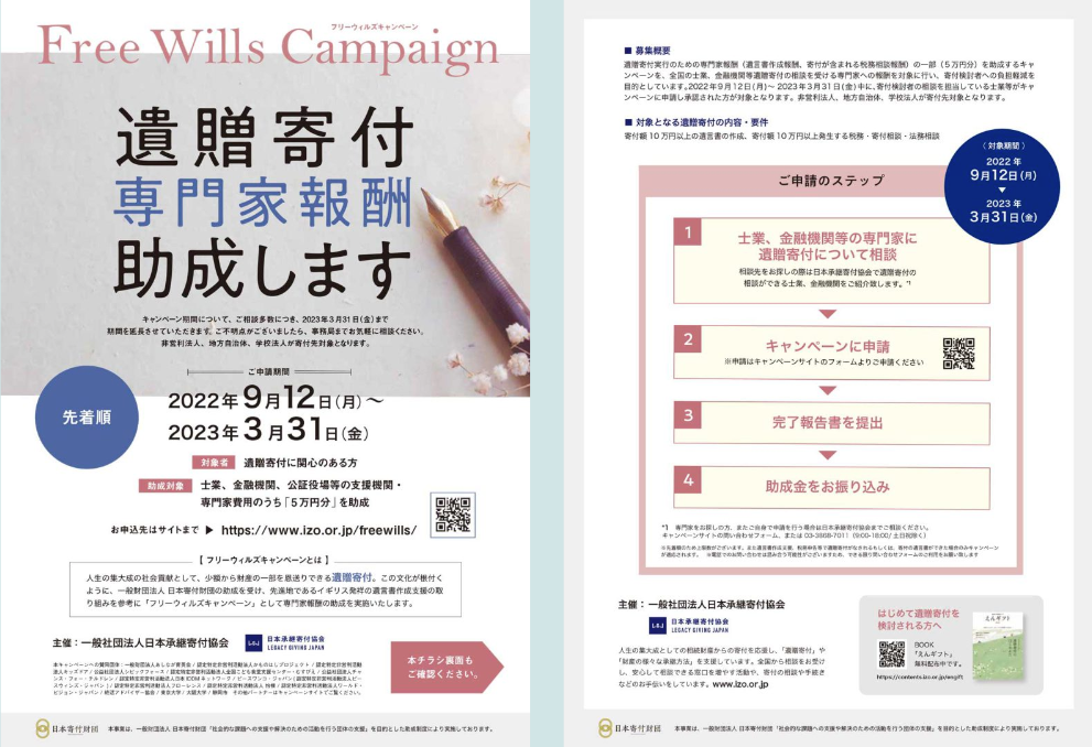 - フリーウィルズキャンペーン「寄付遺言書 助成キャンペーン」について