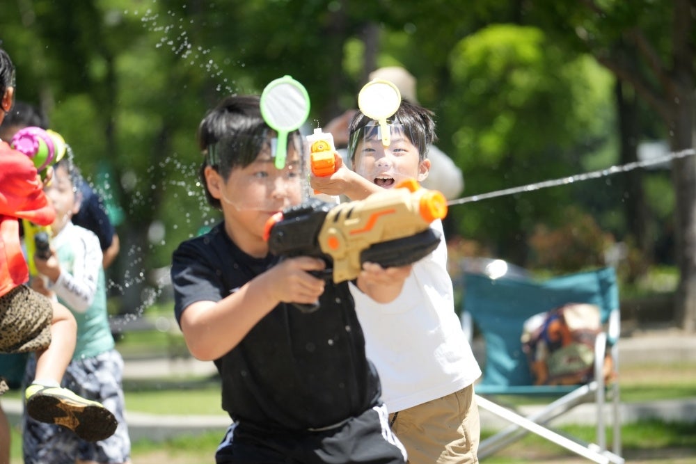 2022年から毎年Hisaya-odori Parkをメイン会場として大会も開催しており、毎回多数のリピーターも集う人気イベントとなっています。水鉄砲と専用のゴーグル・ポイがあればプレーできる手軽さ、運動の得意不得意に大きく左右されず安全かつ感覚的に楽しめることが特徴です。子どもから大人まで分け隔てなく楽しめ、夢中になれる競技として毎年メディアにも多数取り上げて頂き、夏の風物詩になりつつあります。