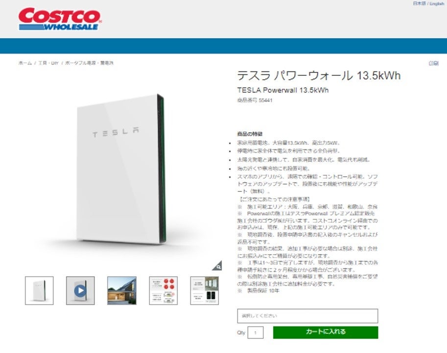 サービスサイト:https://www.costco.co.jp/c/TESLA-Powerwall-135kWh/p/55441