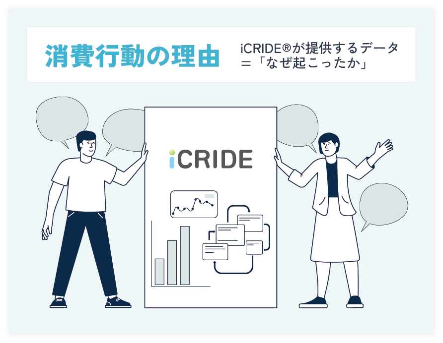 iCRIDE(アイクライド)は、メディリード社が保有する Medical Health Care データベース(MHP)を活用し消費者の意識や行動を分析・可視化したデータを閲覧できるサービスです。